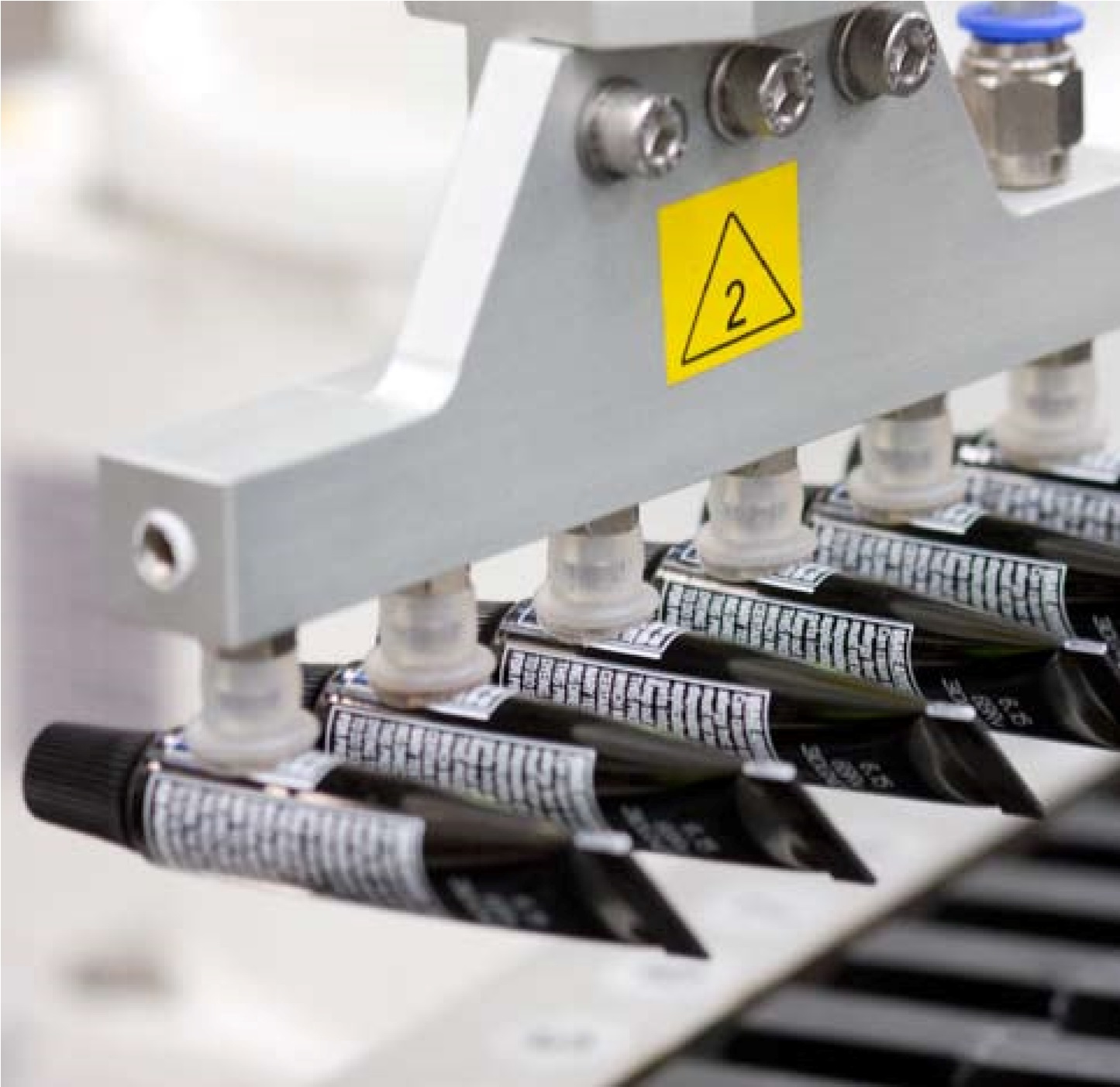 “这是一个十分复杂的任务,”Gauthier评价道。他于10年前加盟PharmaCos公司,此前在加拿大欧莱雅当了10年工程师。这个项目除了工期紧、需满足防爆型灌装机特殊要求(伊诺雅用少量酒精代替氨)之外,还规定必须完成取管、装盘等一系列动作,包括最后将膏管连说明书一起封入成品盒。